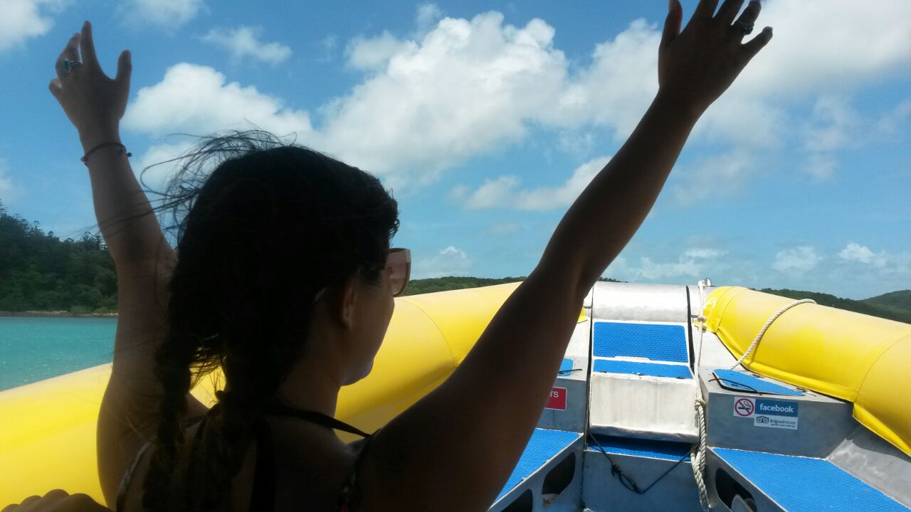 Following a long, fully booked, Valentine’s Day night bus from Rainbow Beach, 18-hours later we arrived to Airlie Beach just after the sun came up. We had a day tour booked with ‘Ocean Rafting’ which is a speedboat company to take us around the Whitsunday Islands for a day.
