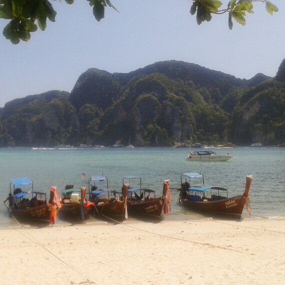 Our first task that evening was looking at a map of Thailand. Where shall we go? We could go anywhere our hearts desired! We genuinely had no plan or any idea where abouts the island were – there are hundred of islands to see in Thailand, and all we knew was that we fancied a more relaxed trip – we were not feeling the crazy full moon parties! We looked at Koh Samet, Koh Chang and Koh Phi Phi… weather wise Phi Phi looked the best and was the furthest away. With two and a half weeks to use out logic was travel further, work our way back. Sorted.