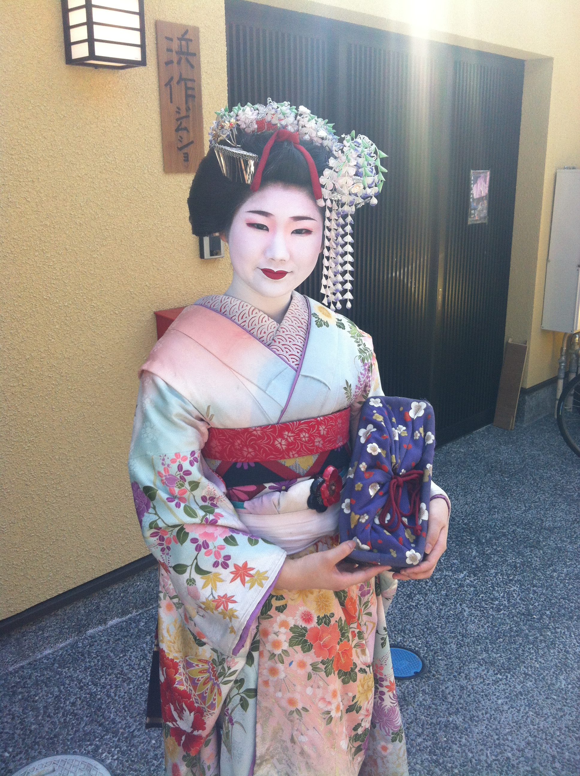 My Kimono fascination inevitably led me to Gion, Kyoto’s famous Geisha district filled with shops, restaurants and tea houses. I spotted three ‘Geisha’s’ but apparently real Geisha’s do not allow their photograph to be taken so I believe these to be tourists. However, all stayed in ‘character’, very shy and sweet!